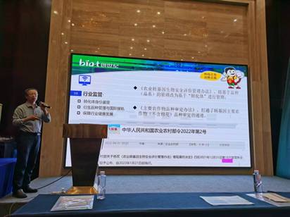 生物技术中心主任崔洪志博士重点介绍了公司抗虫耐除草剂转化体科创5017的研发进展,分享前沿育种技术成果;并对科创5017推进新疆棉区新品种的转育提出了自己的见解。产品开发部张华总在此基础上简要介绍了科创5017的合作模式、签约流程及材料发放要求。各成员单位纷纷表示该项技术对育种工作意义重大,愿与创世纪合作推进新疆棉区抗虫耐除草剂新品种的选育工作。