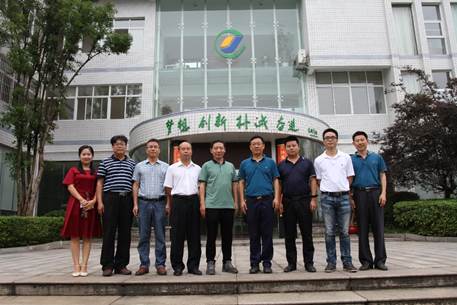 戴处长一行在袁创公司办公楼前合影