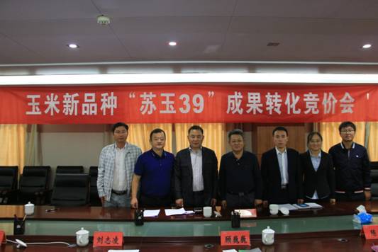 2019年9月21日,杨雅生总裁参加了由江苏省农业科学院承办的玉米新品种“苏玉39”成果转化竞价会,参与竞价的还有江苏瑞华农业科技有限公司。按照参会议程,我司以适宜的合作方式竞价成功,顺利取得“苏玉39”独占实施许可权。会后,杨总裁同江苏农科院成果转化处刘志凌副处长、粮食作物研究所袁建华所长就合作细节进一步探讨,最终达成一致意见,签订合作协议。