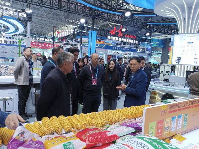 10月26日深圳市乡村振兴和协助交流局盖风梓处长、杨凌区机关事务服务中心黄红星局长、深圳市会展产业协会李红副秘书长等相关领导亲临创世纪种业展位,听取工作汇报。